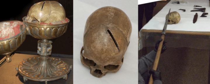 As for the skull that was found by Saunière it’s possible that it could have been the skull of Dagobert II and if we go by the BBC account that’s who it was. But the modern retelling of the story is in contradiction with that narrative.