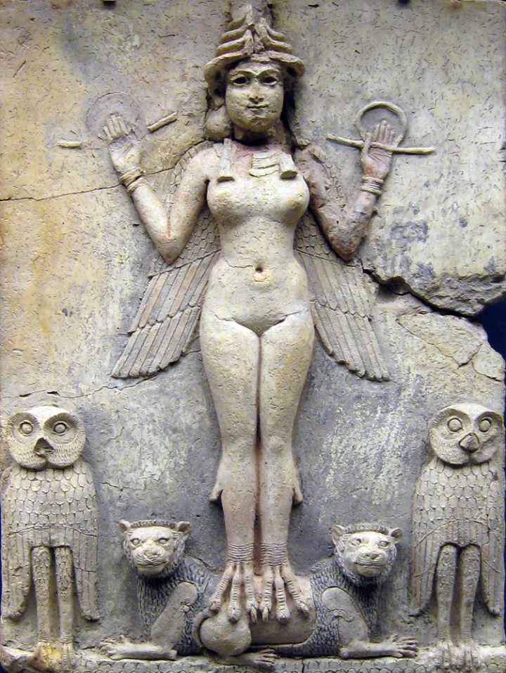 Inanna is an ancient Mesopotamian goddess that has been traditionally associated with love, beauty, sex, war, justice, and political power. She would later be worshipped by the Akkadians, Babylonians, and Assyrians by the name of Ishtar. Known as the “Queen of Heaven” she would later be associated with the “Whore of Babylon”. Her cult was associated with several sexual rites. She is alluded to in the Hebrew Bible as an influence for the Phoenician goddess Astoreth, who in turn influenced the Greek goddess Aphrodite.