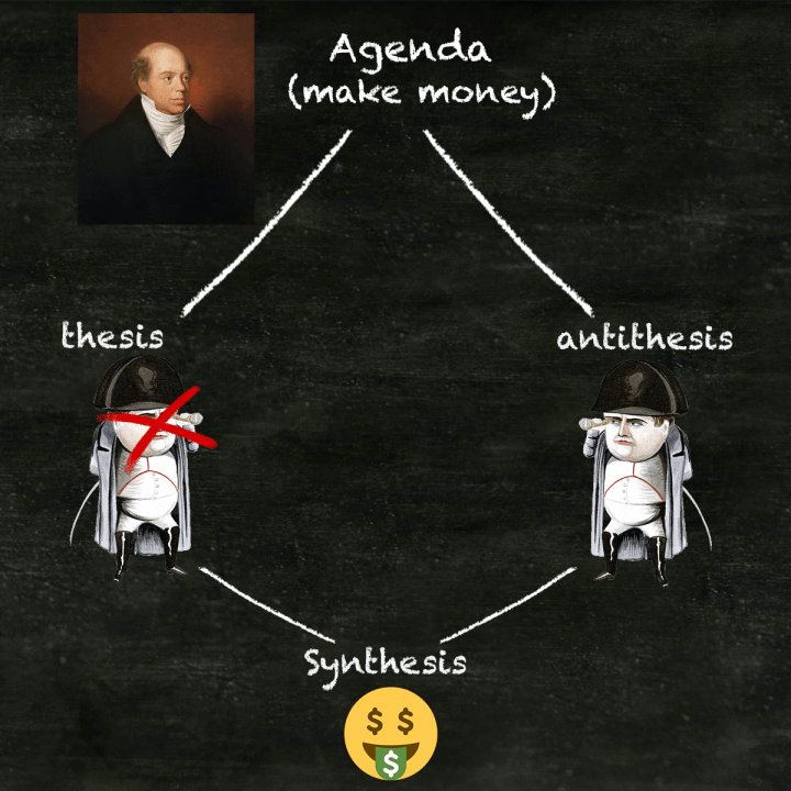 The Rothschild agent, via their technological advantages, was therefore occupying a very different timeline respectively to the rest of the population in London, albeit for a short period of time. This synthesis of opposing timelines was all Rothschild needed to capitalize on the event in a truly spectacular fashion.