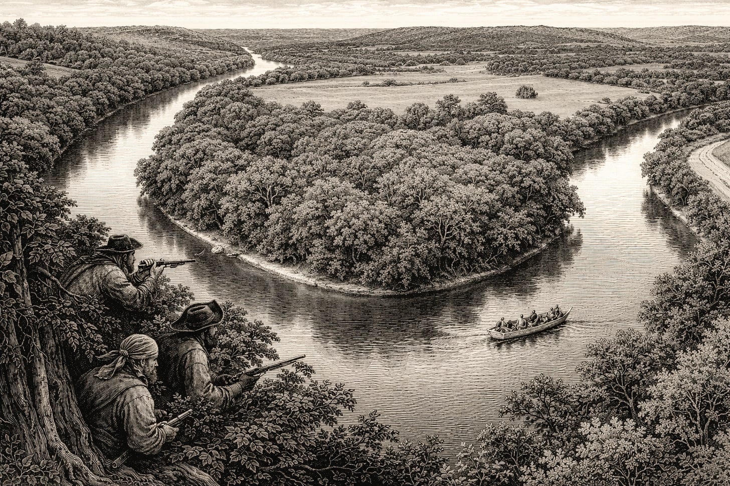 The Ohio River Valley and Wabash River Valley were the highways of early America. Whoever controlled those waterways controlled trade between Appalachia, Illinois, Missouri, and the Mississippi system. Ford understood this. His gang effectively taxed movement—extracting value from anyone who passed through their corridors.