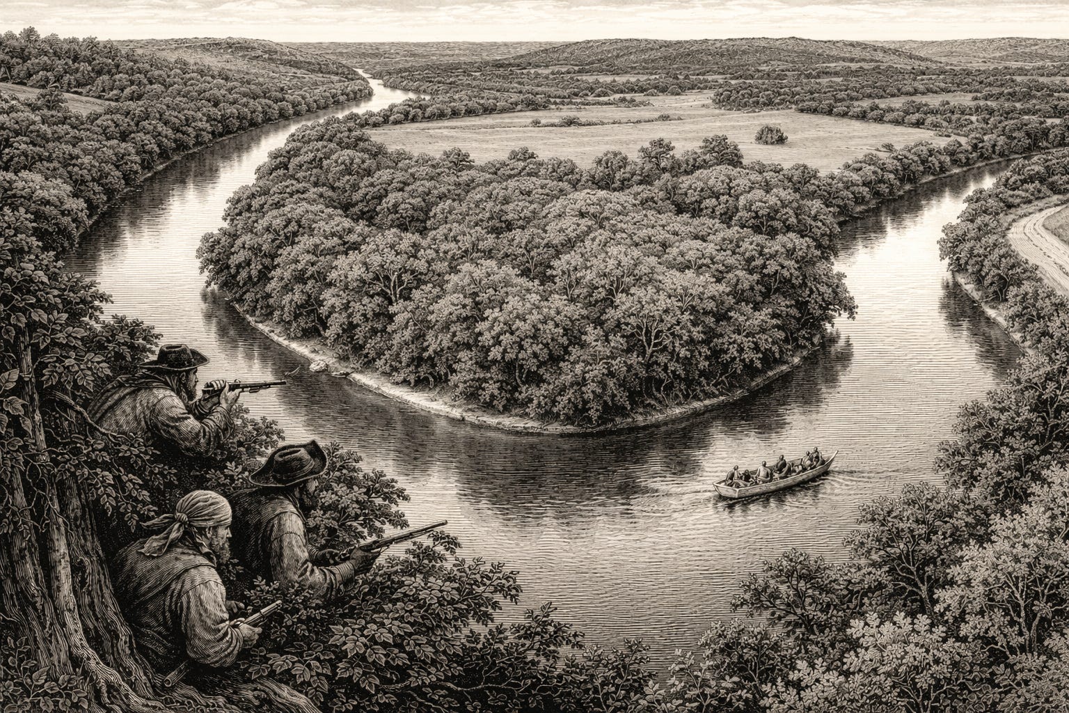 Before Chicago had an Outfit, before New York had families, and long before organized crime acquired Italian surnames, the American frontier already supported something far more fluid—and arguably more powerful: river‑based criminal syndicates moving quietly along the Ohio, Wabash, and Mississippi corridors. These were not loose bands of thieves. They were integrated systems that fused counterfeiting, land seizure, intelligence gathering, transportation monopolies, and political influence into what amounted to parallel governments embedded directly inside early American expansion. Rivers were not scenery. They were infrastructure. Whoever controlled them controlled trade, migration, and information.