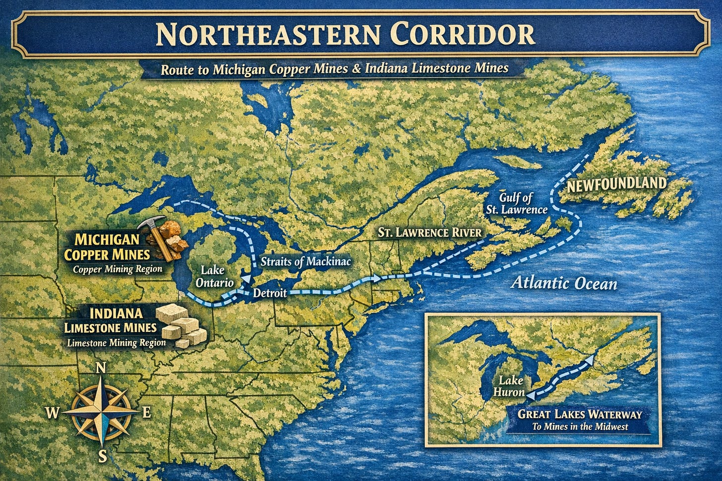 Through Scottish, Irish, Mediterranean, and Byzantine channels, the Templars inherited fragments of older Atlantic logistics—systems organized around resource access rather than settlement or population transfer. These pathways linked tin from Britain, copper associated with the Great Lakes region, and gold from the southern Atlantic sphere into a quiet material circuit. This was not colonial expansion in the modern sense. It was extractive routing: restricted corridors, compartmentalized knowledge, and deliberately low visibility. Power was exercised through access, not occupation.