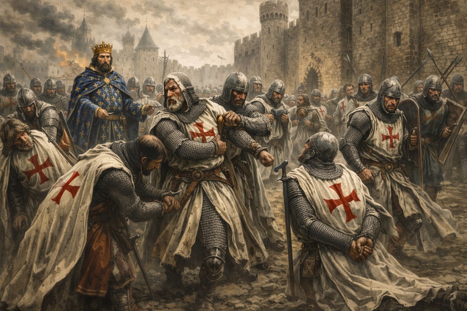 The suppression of the Templars by the French crown was not driven by theology but by fiscal emergency and sovereign insecurity. Philip IV was effectively bankrupt, deeply indebted to the order, and increasingly threatened by an organization that controlled credit, construction labor, fortified sites, and transnational routing independent of royal authority. The arrests of 1307 functioned as a coordinated asset seizure: personnel were detained, properties expropriated, archives confiscated, and operational continuity forcibly terminated.