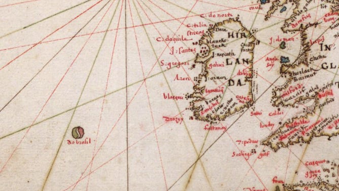 Columbus’s 1492 voyage should therefore be understood not as a moment of revelation but as a system restart under sovereign control. By 1500, Portugal establishes formal administrative presence in Brazil, transforming what had existed as dispersed routing knowledge into legally enclosed territory backed by taxation, charter, and military enforcement. Once Atlantic geography is absorbed into imperial recordkeeping, Hy‑Brasil loses its operational function. The cartographic placeholder collapses into legend. Iceland recedes to the margins. The northern relay network withers as southern maritime corridors—shorter, faster, and institutionally enforced—become dominant. What disappears here is not myth, but redundancy: informal access is replaced by centralized command.