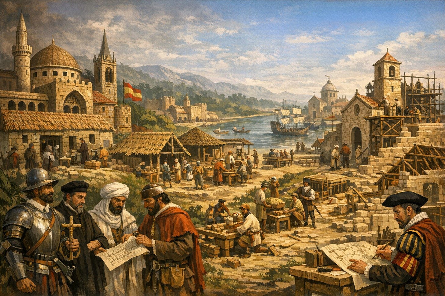 By the time Iberian powers entered the Atlantic world, they were not exporting a pristine Greco‑Roman inheritance or a uniformly Catholic institutional order. Late medieval Iberia itself functioned as a frontier society, shaped over centuries by layered legal, architectural, and mercantile syncretism produced through prolonged Christian, Jewish, and Islamic coexistence. Guild organization, construction techniques, contractual instruments, and commercial law routinely converged across confessional boundaries even where theological reconciliation remained impossible. What crossed the Atlantic, therefore, was not a coherent civilizational blueprint but a flexible frontier repertoire already conditioned by pluralism, legal hybridity, and jurisdictional overlap.